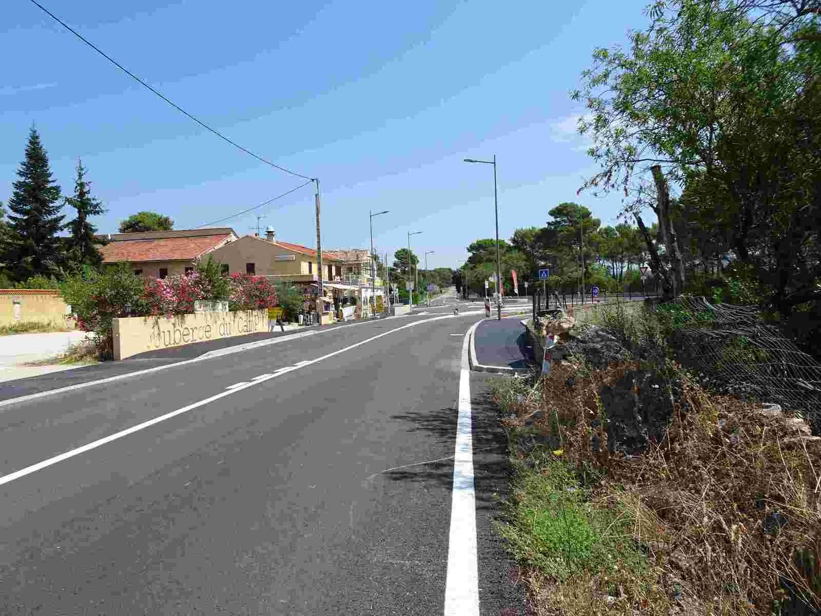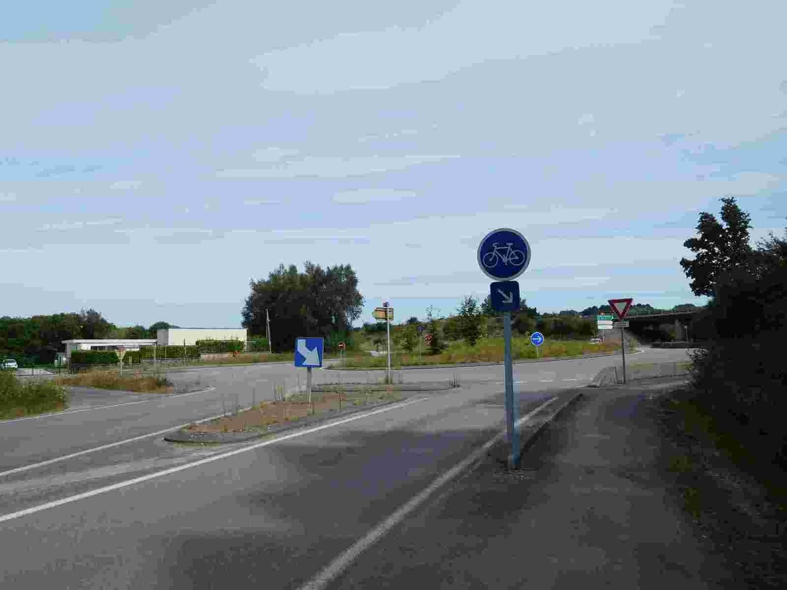 Malgré l’espace disponible, les cyclistes qui y accèdent peuvent d’abord cheminer par des bandes latérales cyclables mais aux abords de ces ronds-points ils sont envoyés dans le flot motos voitures et camions. Pour bien marquer ces ronds-points et ralentir -un peu- les véhicules moteurs il aurait pourtant été simple au minimum de mettre des « plateaux traversants » à chacun des accès à défaut de réaliser une piste cyclable sur les côtés du rond-point. Enfin, comme il n’y a pas de panneau d’agglomération, la vitesse… n’est pas limitée. Sauf le 80km/h qui est la loi générale
